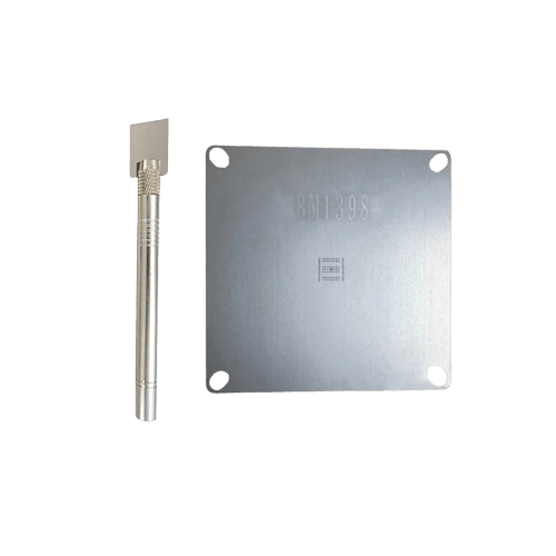 The BM1398 Stencil Plate is designed for accurate tin plating during ASIC chip repairs on Antminer S19, S19 Pro, and T19 hash boards. Made from high-quality materials, it ensures precise alignment and consistent results for efficient chip maintenance and replacement.