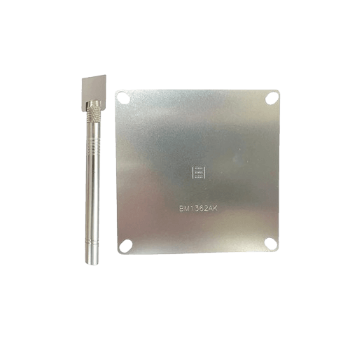 The BM1362AK Stencil is a precision steel mesh plate designed for use with tin tool fixtures during the repair and tinning of Antminer S19j hashboard chips. Made from high-quality, high-temperature-resistant materials, this stencil ensures accurate solder paste application and uniform chip tinning, minimizing the risk of short circuits or misalignment.
