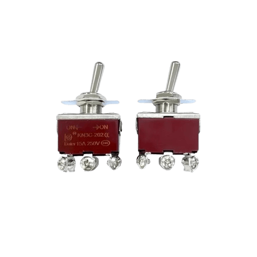 The KN3C-202 Toggle Switch is a durable, DPDT (Double Pole Double Throw) ON-ON switch designed for heavy-duty industrial and electronic applications. Built with a medium profile and 6-pin configuration, this switch provides reliable dual-circuit control, making it suitable for power supplies, control panels, mining equipment, and other high-performance systems.