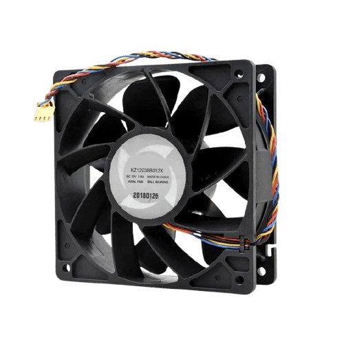 The KZ12038B012X cooling fan is a high-performance thermal solution engineered for mining rigs, servers, and industrial systems. Operating at 12V DC with a 2.80A current, this fan provides powerful airflow to maintain optimal temperatures and prevent overheating in high-demand environments.